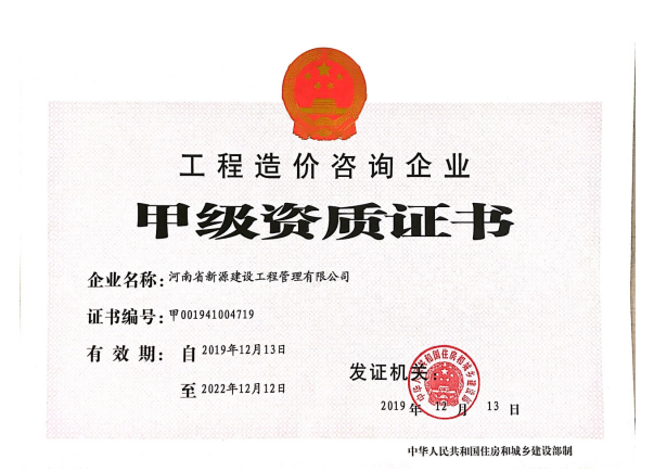 為河南省新源建設(shè)工程管理有限公司頒發(fā)
